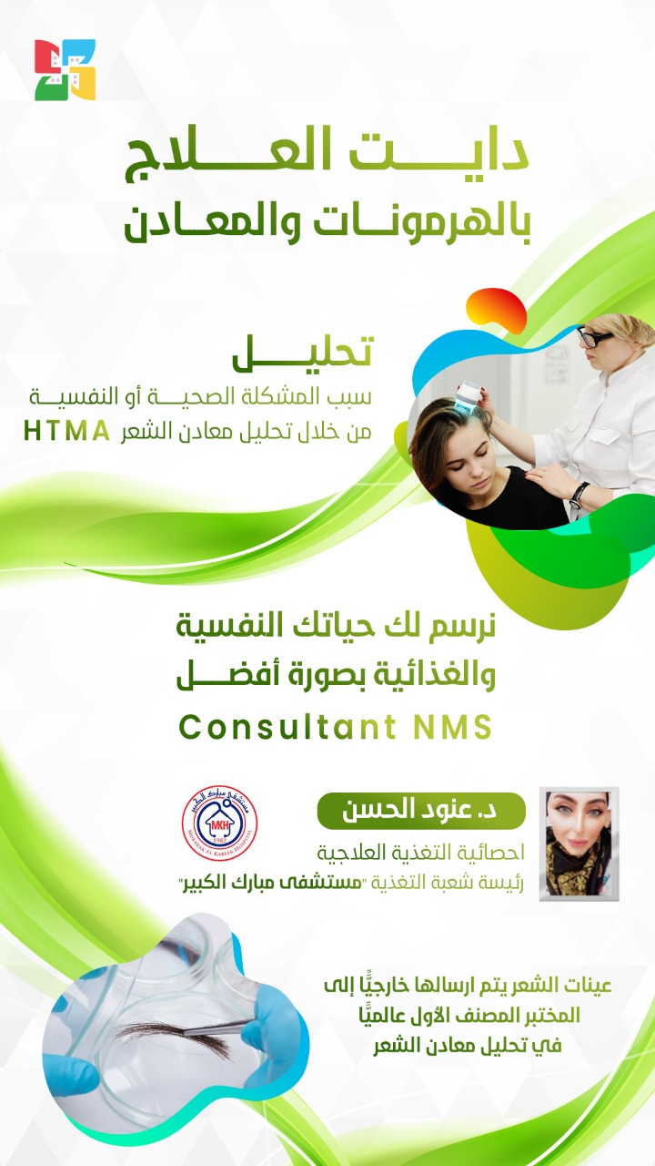 1. تحليل انسجة الشعر في مختبرنا الرئيسي في الولايات المتحده الامريكيه الحاصل على جائزة الايزو والمعترف فيه عالمية من قبل منظمات الصحية مختبر ( TRACE ELEMENTS ) .